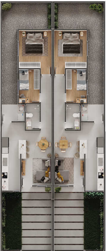 Casas Geminadas com 48m², ambientes bem planejados para o conforto da sua família.